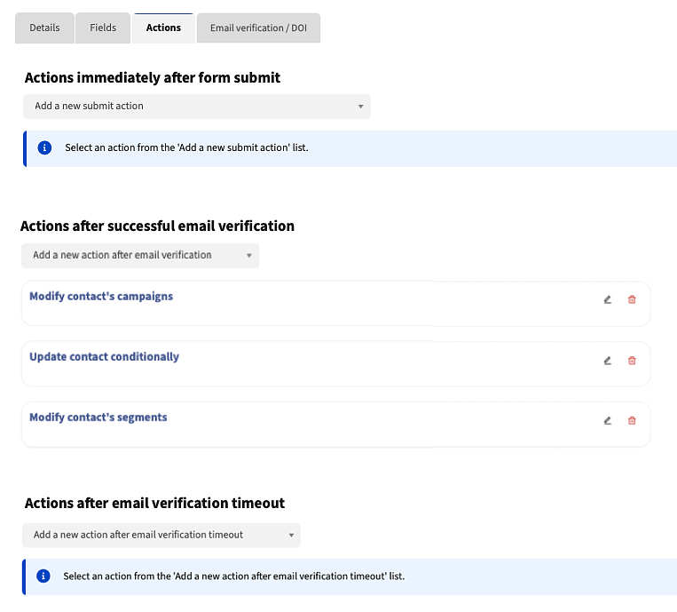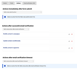 Headline “Actions after successful email verification” underneath existing dialogue